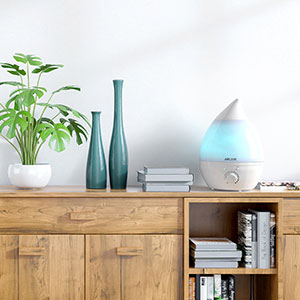 If you like a more natural look, the MESA cool and warm mist ultrasonic humidifier comes in a gorgeous walnut-tone finish.